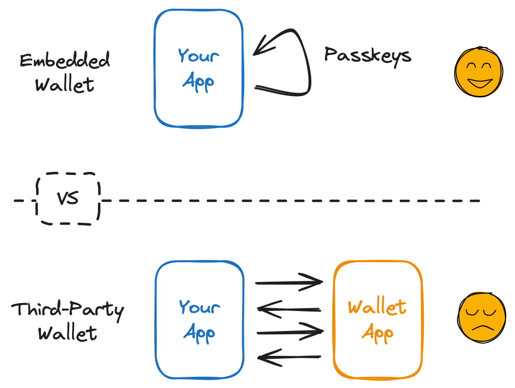 In a nutshell, in-app wallets keep your users on your app instead of sending them back and forth between your app and a 3rd party wallet app.